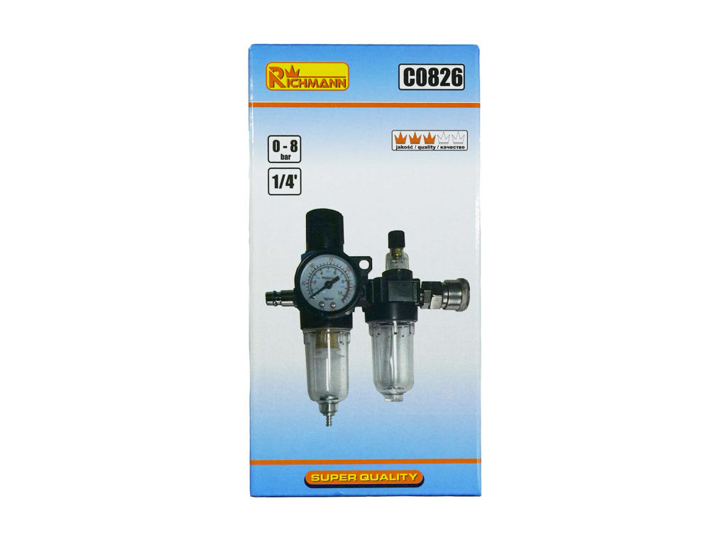RICHMANN Regulátor tlaku s manometrem + odlučovač + přimazávač | 1/4", 0-8 bar