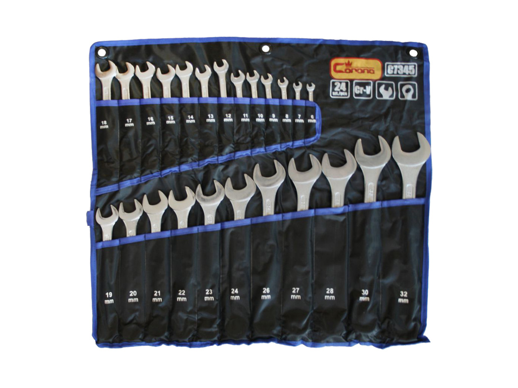 GK TOOLS Sada plochých klíčů, chrom | 6-22 mm, 8 dílů, textilní obal