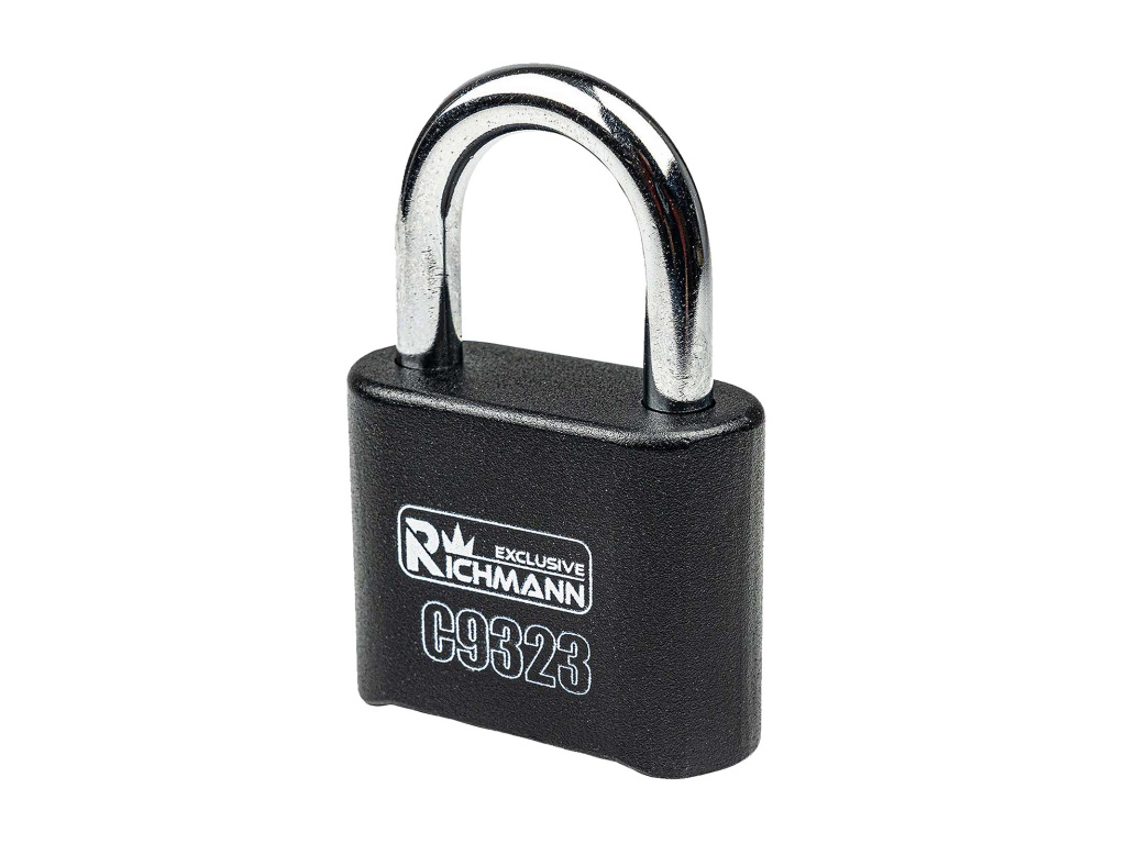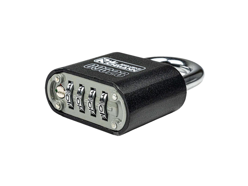 Visací zámek zabezpečený čtyřmístným kódem - bez klíče. Kód lze nastavit nezávisle a lze jej libovolně měnit pro zvýšení ochrany.
