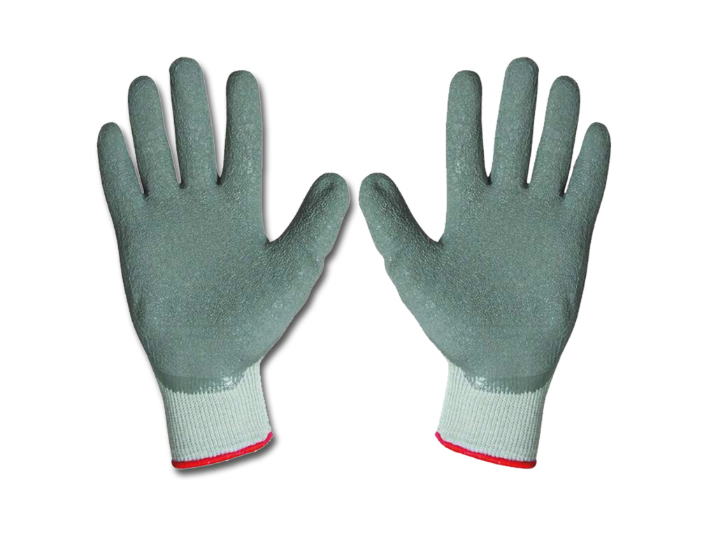 Bavlněné rukavice s pružným nápletem na zápěstí, polomáčené v barevném přírodním latexu.
