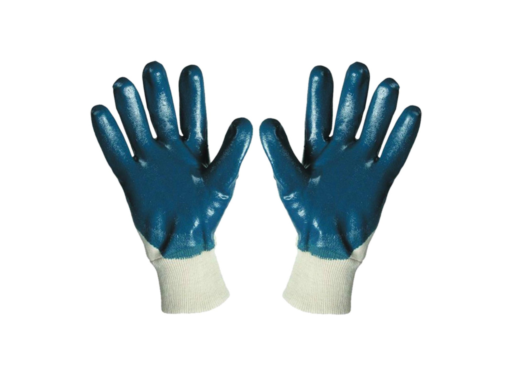 Rukavice z bavlněného úpletu polomáčené v nitrilu, pružný úplet na zápěstí,
