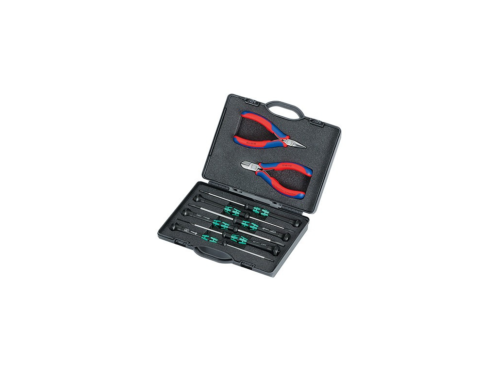8-dílný, osazený 2 kleštěmi pro elektroniku a 6 šroubováky pro elektroniku
