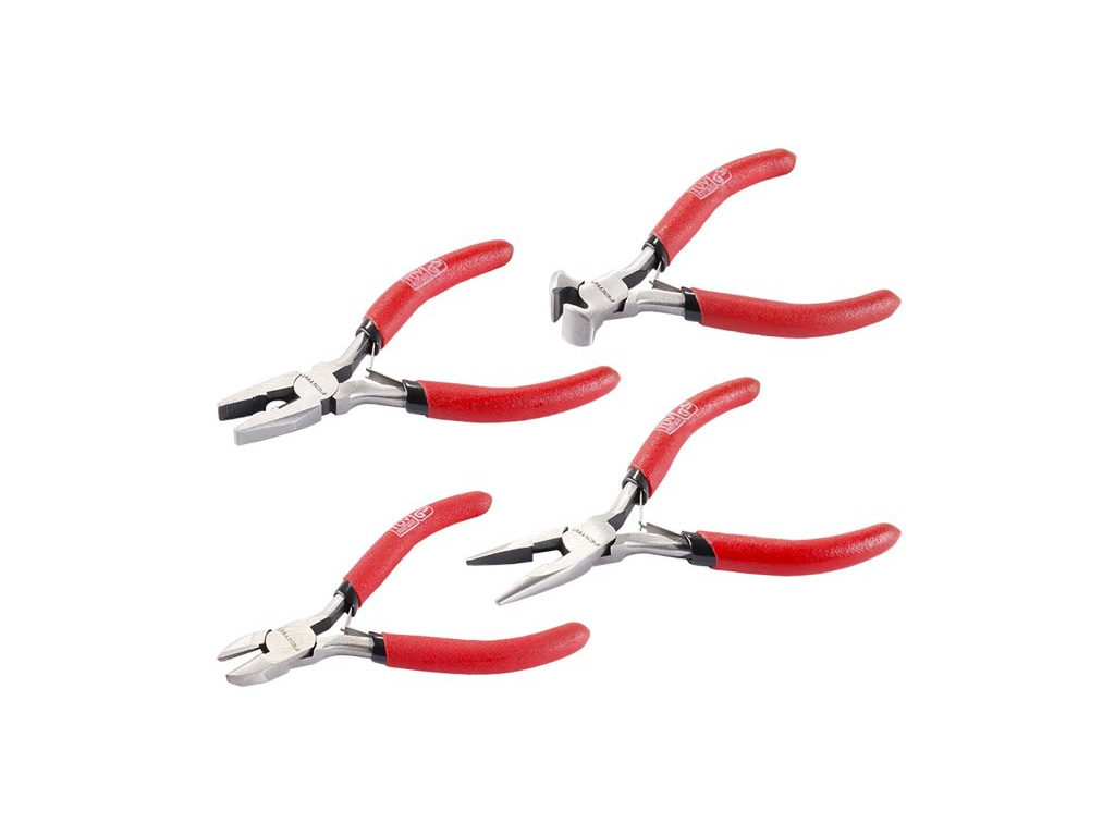 Sada minikleští (110mm) v praktickém uzaviratelném pouzdře, obsah sady: kombinované, radiové, boční a čelní štípací kleště, pogumované rukojeti, pro jemnou dílenskou práci.