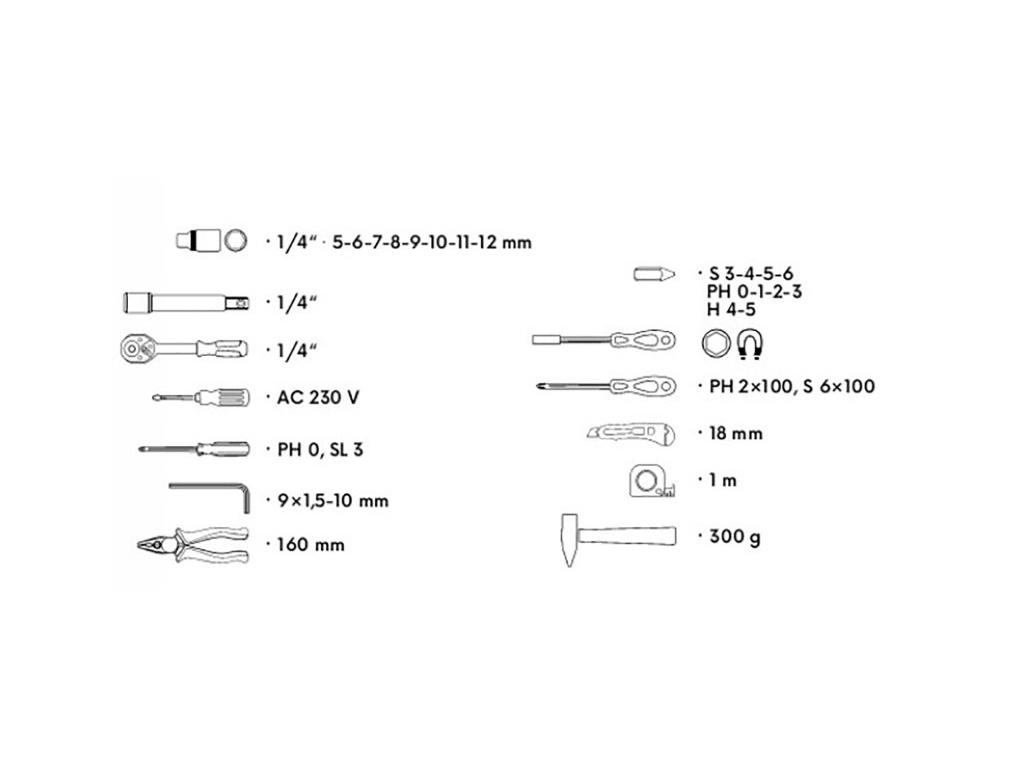 - set nejběžněji použivaného nářadí