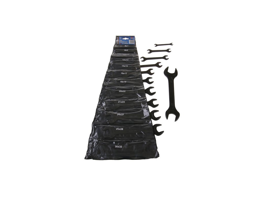 Sada klíčů je vyrobena kováním z kvalitní chromvanadiové oceli, černěný povrch, v plastovém rolovací pouzdře. Klíče jsou kombinované - dva rozměry. Kvalitou, tvrdostí a přesností odpovídají normě DIN 895.