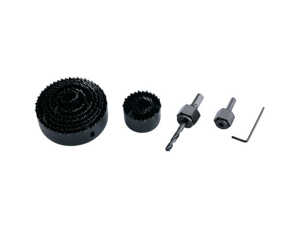 Sada vykružovacích pil 13ks do dřeva a sádrokartonu, průměr: 19, 22, 25, 35, 44, 51, 60, 68, 76, 82 mm + inbus + 2x hlavička.