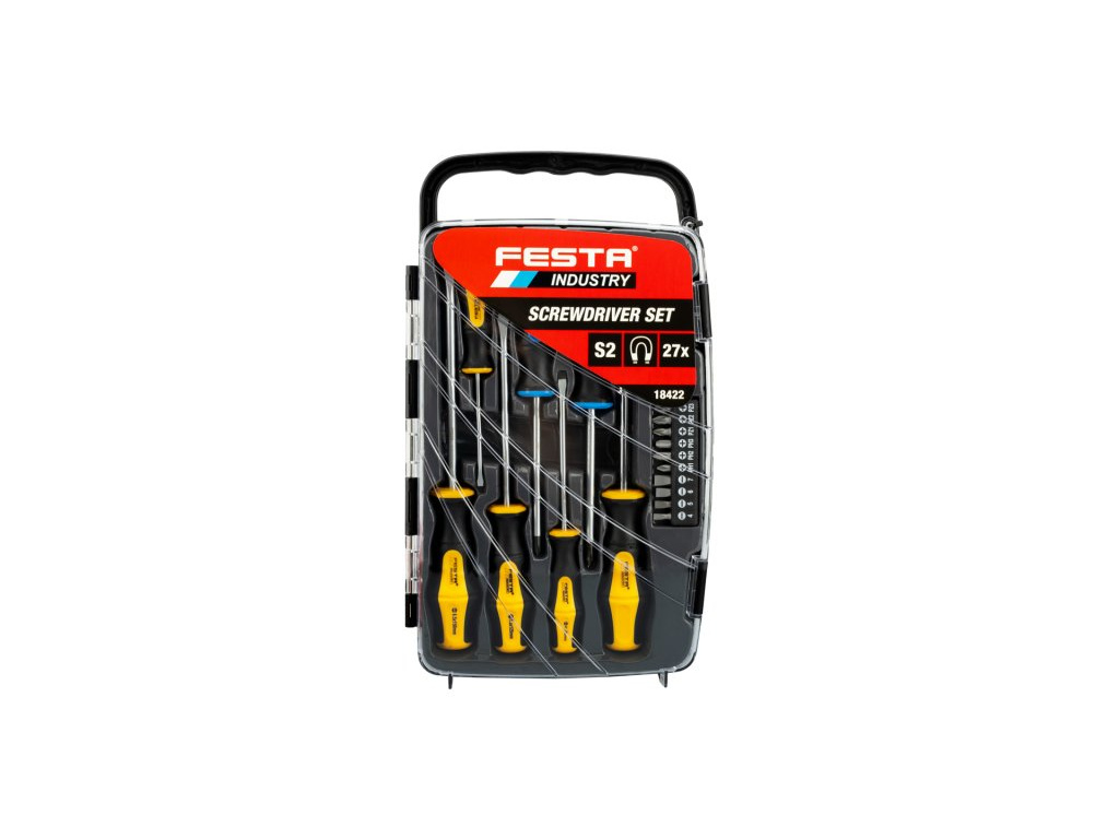 Sada šroubovák s bity 27ks. Legovaná ocel S2, magnetická koncovka,