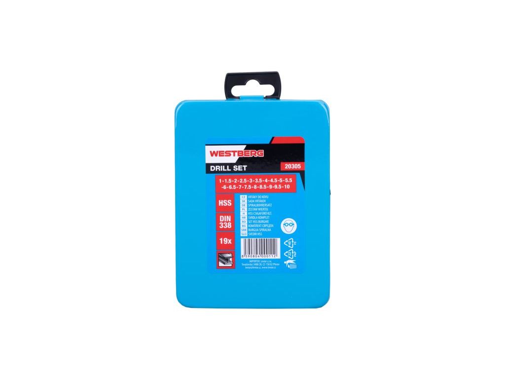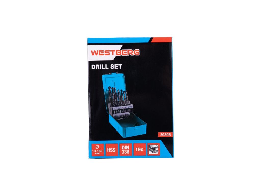 Sada vrtáků HSS DIN 338, RN, je vyrobená z kvalitní rychlořezné oceli (HSS). Přesné vyrobená šroubovice pro kvalitní výkon, přesnost a dobré středění, vybroušení úhlu špičky vrtáku 118°, pro vrtání běžné konstrukční oceli, baleno v plechové krabičce.