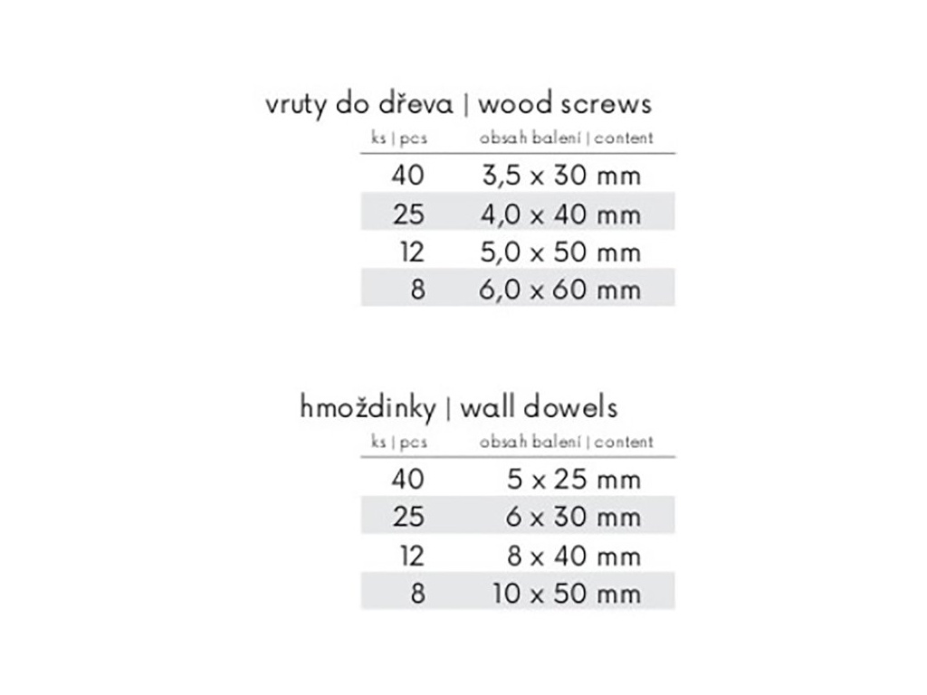 - sada vrutů a hmoždinek v plastovém oboustranném pořadači
