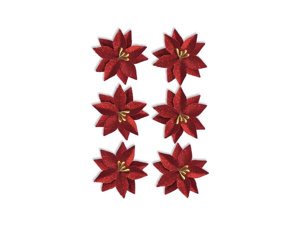 papírové květiny Vánoční hvězda v třpytivém provedení2 vrstvy okvětí a zlaté pestíkysamolepicí polštářek na zadní straně 6 ks v balení průměr květu cca 4 cm vhodné k dekoraci vánočních přání, visaček, dárečků apod.barva červená upozornění: Nevhodné pro děti do 3 let. Nebezpečí polknutí malých části. Obalové části udržujte mimo dosah dětí.
