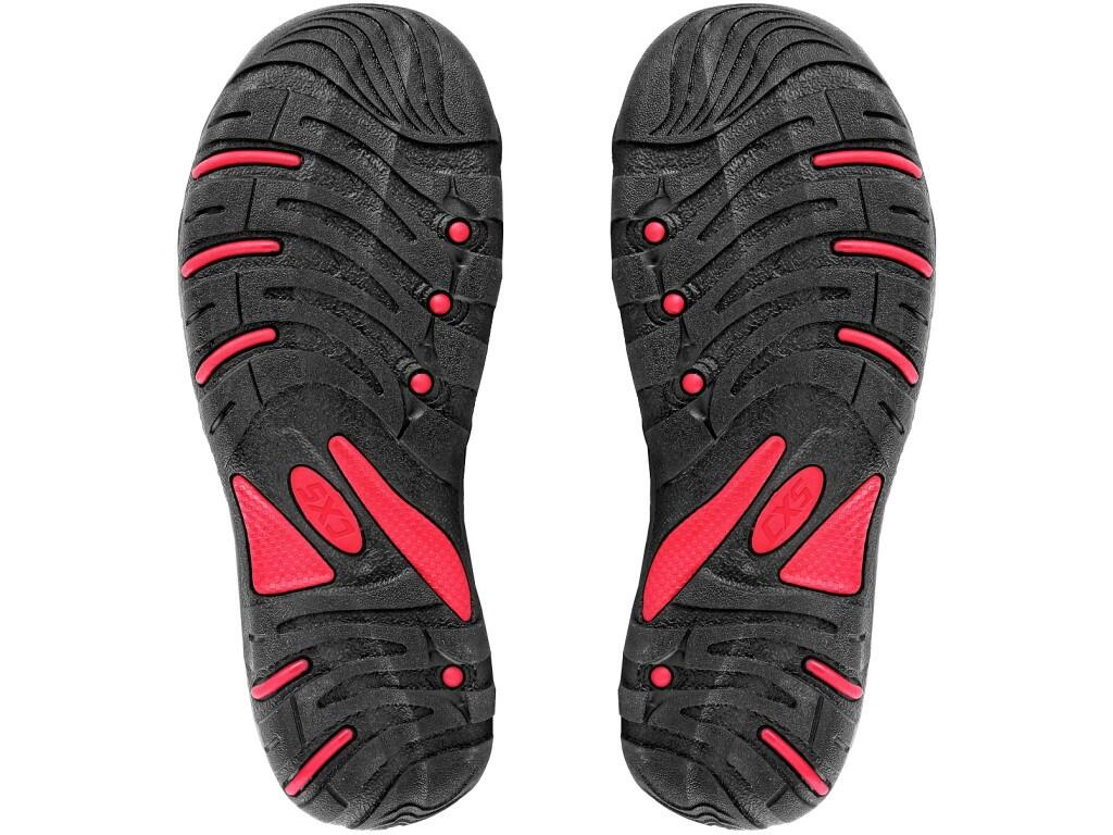 Volnočasový sandál s průduchy po stranách pro lepší odvětrávání, možnost stažení stahovací gumičkou, reflexní doplňky.