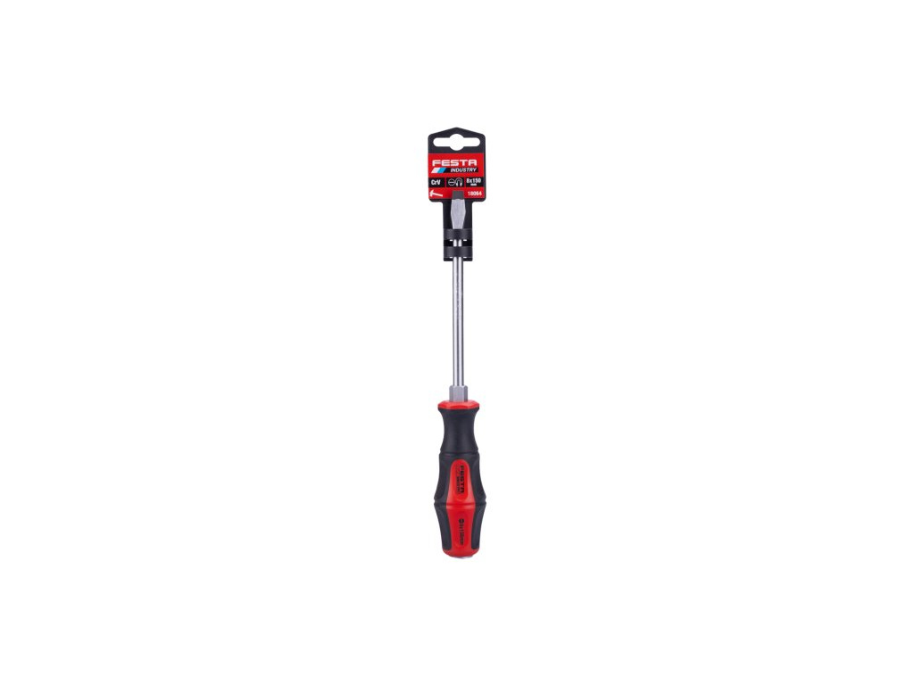 Kovový dřík šroubováku FESTA je vyroben z kvalitní chromvanadiové oceli, kalený hrot je magnetický, dřík šroubováku je pevně spojen s úderovou koncovkou, u rukojeti je šestihran pro použití klíče, kombinace polypropylenu a pryže na rukojeti a její ergonomický tvar zaručuje dobré antiskluzové vlastnosti a dobrou odolnost vůči mazadlům a chemikáliím.