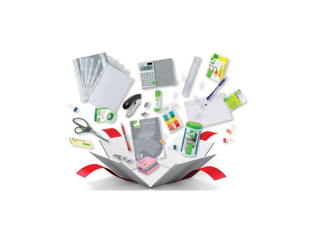 Krabička poslední záchrany obsahuje nepostradatelné potřeby pro Vaši kancelářVhodné jako první výbava do kancelářeZákladní kancelářské potřeby v jednom balíčkuSoučástí Starter Packu jsou:1x Bloček Q-Connect – 76 x 76 mm, intenzivní barvy, 6 ks1x Blok Q-Connect – A4, 4-děrový, linkovaný1x Čisticí ubrousky Q-Connect na monitor, 100 ks1x Drátky do sešívačky Q-Connect – 24/6, 1000 ks1x Euroobaly U Q-Connect – A4, 50 mic, matné, 10 ks1x Kancelářské sponky Q-Connect – 26,0 mm, 100 ks1x Kovové klipy Q-Connect – 19 mm, mix barev, 10 ks1x Kuličkové pero Q-Connect – červené1x Kuličkové pero Q-Connect – modré1x Lepicí bankovní páska Q-Connect – popisovatelná1x Lepicí tyčinka Q-Connect Qstick – 20 g1x Nůžky Q-Connect Soft – 20 cm1x Plastové pravítko Q-Connect – 20 cm1x Samolepicí bločky Q-Connect – 38 x 51 mm, žluté, 3 ks1x Samolepicí záložky Q-Connect – plastové, 12,5 x 43 mm, 5 barev1x Sešívačka Q-Connect – černá1x Solární kalkulačka Q-Connect – 12místný displej1x Transparentní popisovací bločky Q-Connect – neonově žluté, 50 listů1x Zakládací pouzdro s drukem Q-Connect – A4, mléčné1x Zvýrazňovač Q-Connect Highlighters – sada 4 barvy