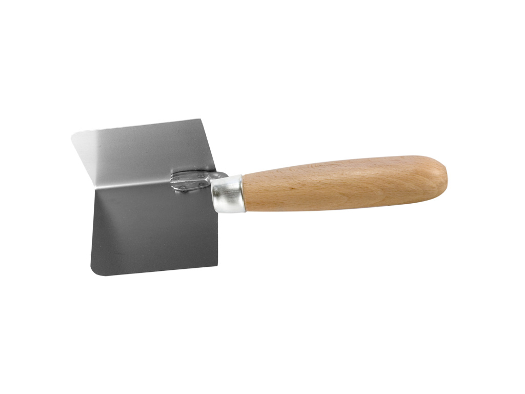 Zednická lžíce pro dokončovací práce, dřevěná rukojeť.