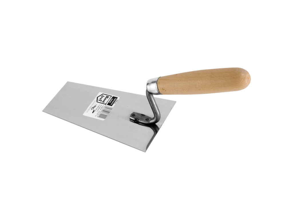 Zednická lžíce pro dokončovací práce, dřevěná rukojeť.