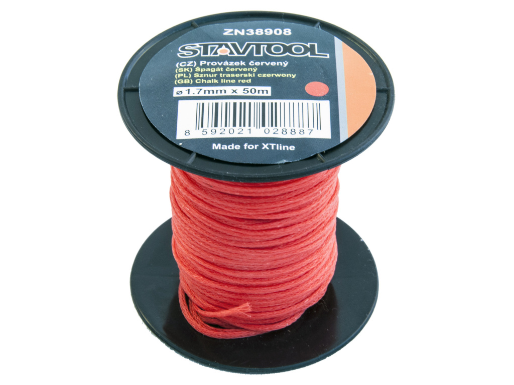 Výrazně barevná voskovaná šňůra pro snadné vyznačení roviny při zednických pracích.