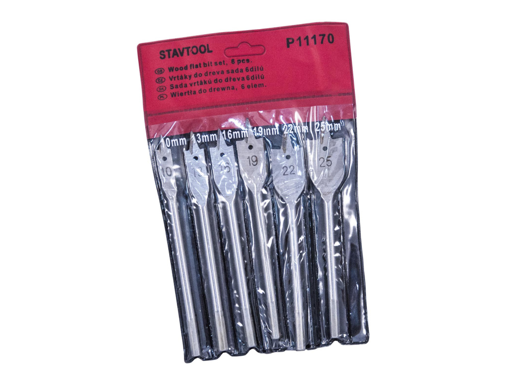 STAVTOOL Sada plochých vrtáků do dřeva 6 dílů | 10-25 mm, PVC obal