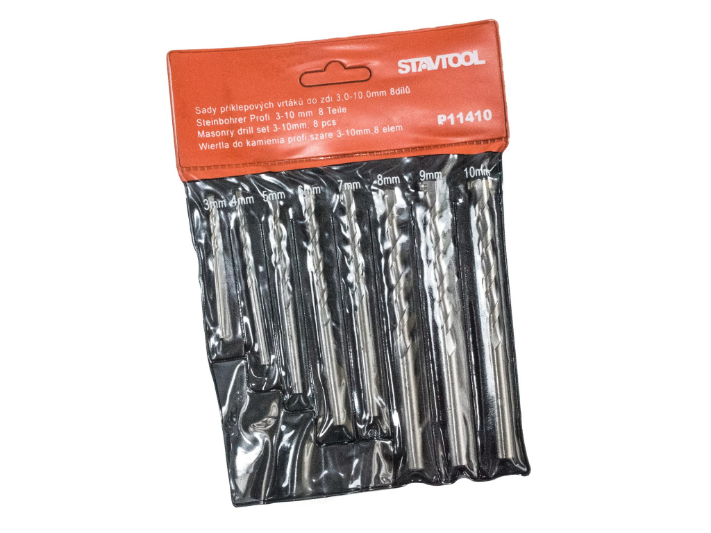 STAVTOOL Sada vidiových vrtáků, válcová stopka | 3-10 mm, 8 dílů, PVC obal