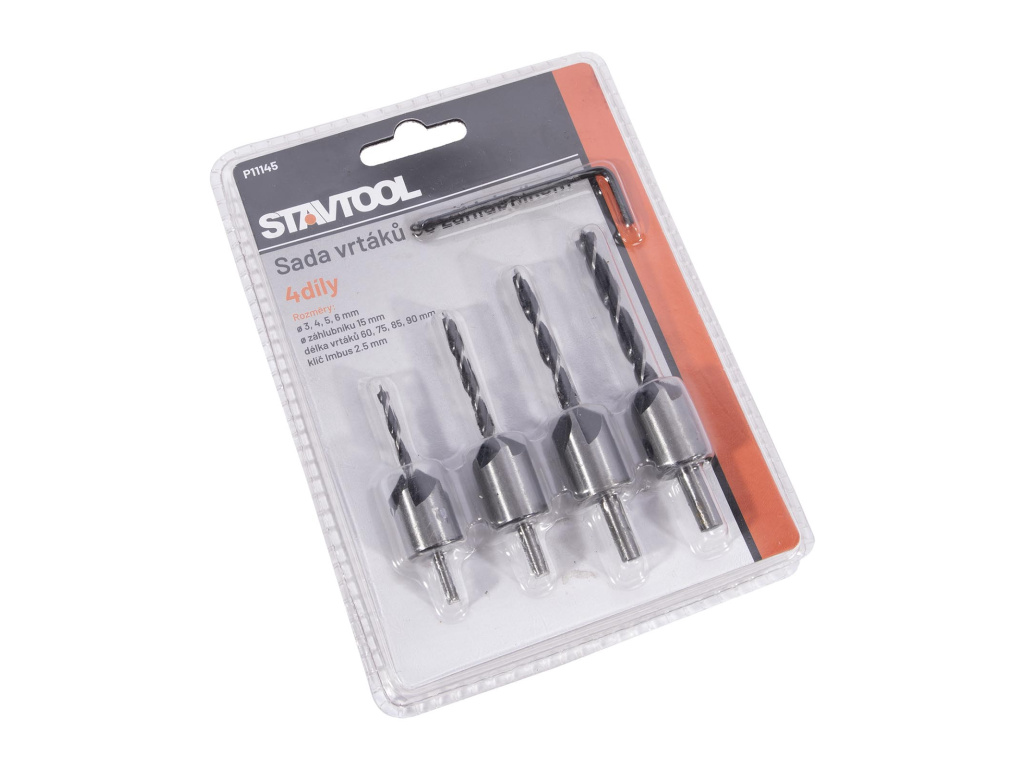 STAVTOOL Sada vrtáků do dřeva se záhlubníkem 4 díly | 3-6 mm, blistrový obal