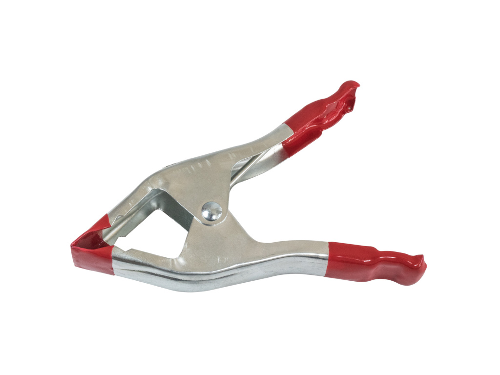 Plechová svěrka s poplastovými koncovými částmi. Určeno pro sevření / držení při lepení.