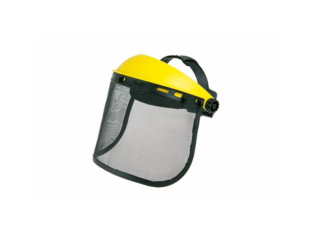 Ochranný štít s mřížkou, zrak je chráněn jemnou mřížkou, výhodou je, že nedochází k mlžení a lépe se dýchá, jednoduše nastavitelná velikost díky otočnému kolečku, potítko vpředu, CE EN 166. Pro práci s motorovou pilou, křovinořezy, řezání dřeva...