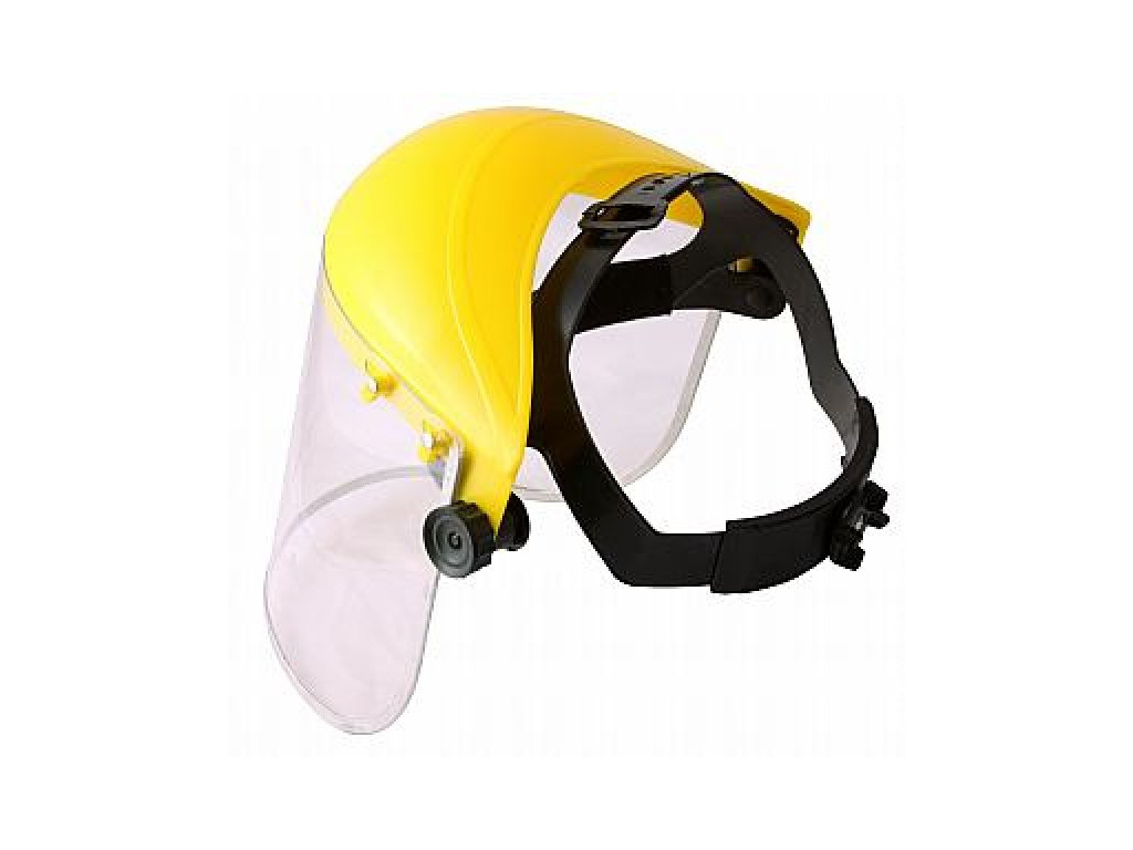 Čirý ochranný štít z polykarbonátovým zorníkem, jednoduše nastavitelná velikost díky otočnému kolečku, potítko vpředu, CE EN 166.