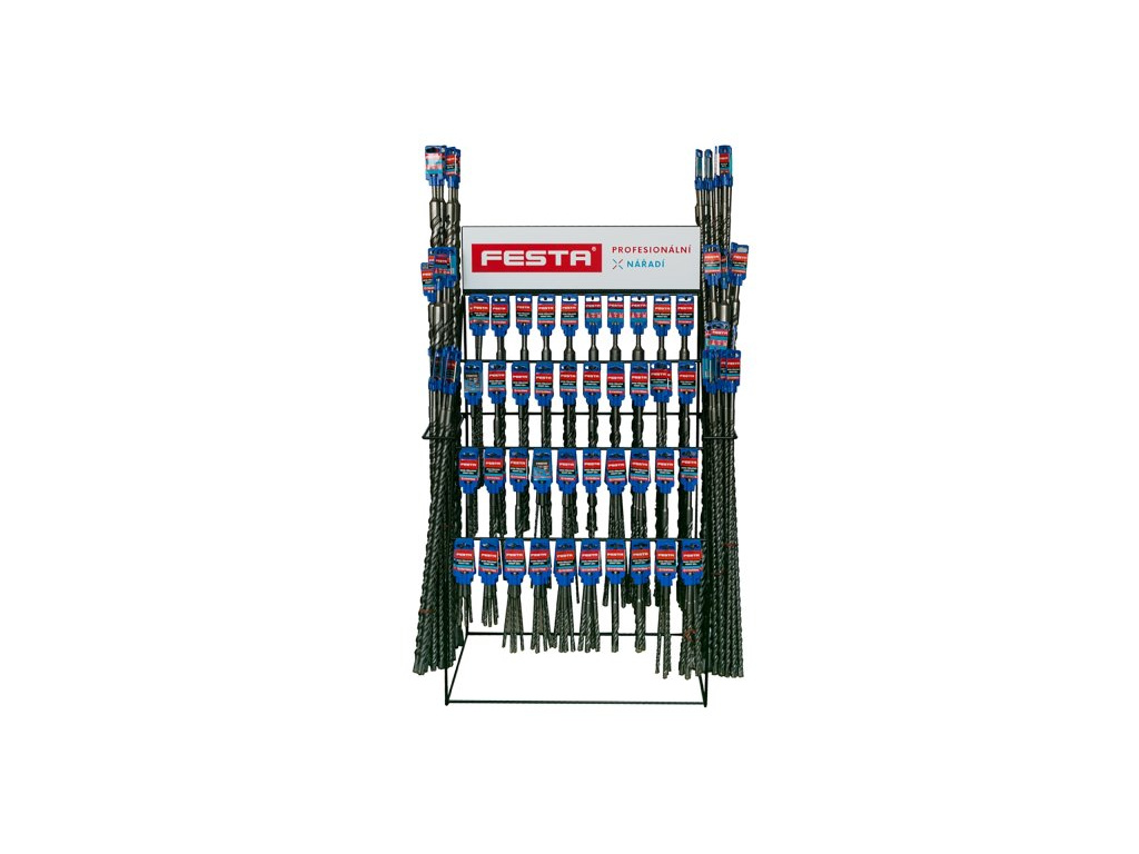 - praktický stojan na různé druhy vrtáků a sekáčů SDS+ a MAX, které se na stojan zavěšují
