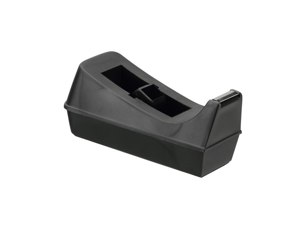Praktický odvíječ pro lepicí pásky 19 mm x 33 mVhodný pro kancelářské i domácí využití, protiskluzová základna pro použití na stoleKovový nůž usnadní odřezávání lepicí páskyS protiskluzovou gumovou základnou pro komfortní používáníBarva: černá