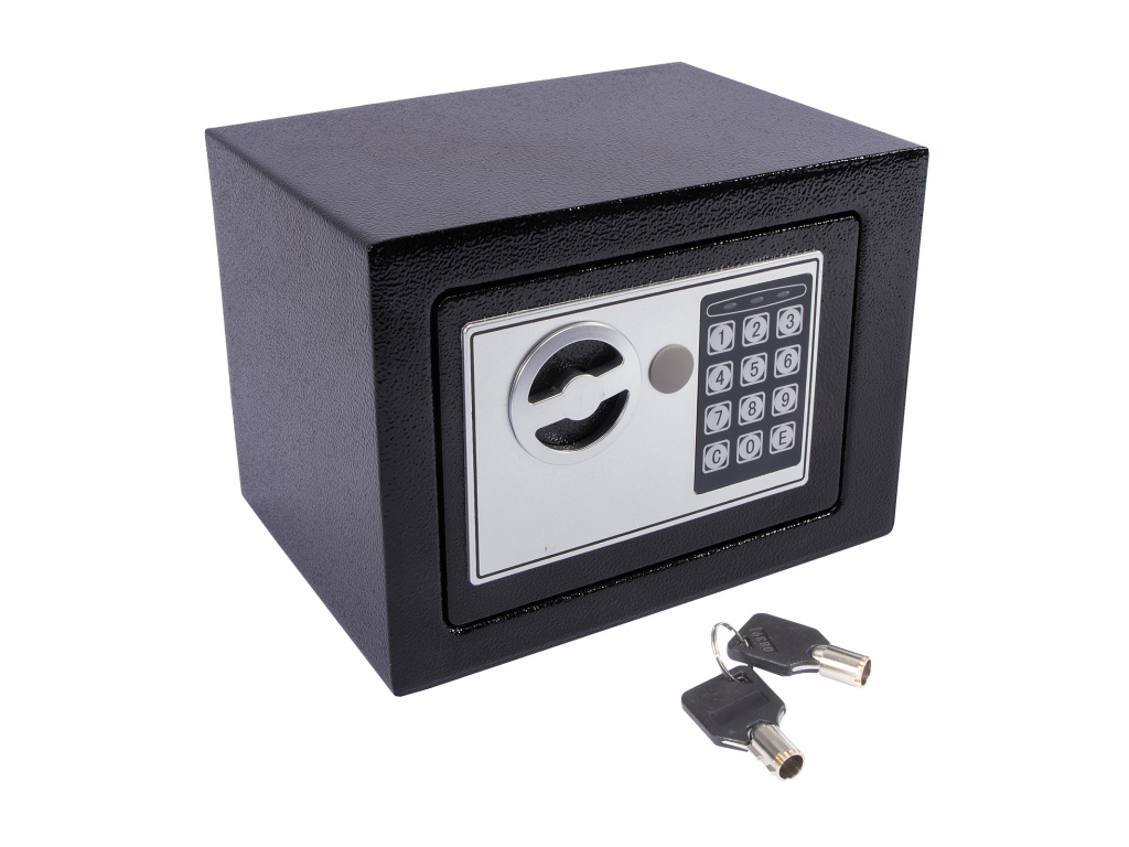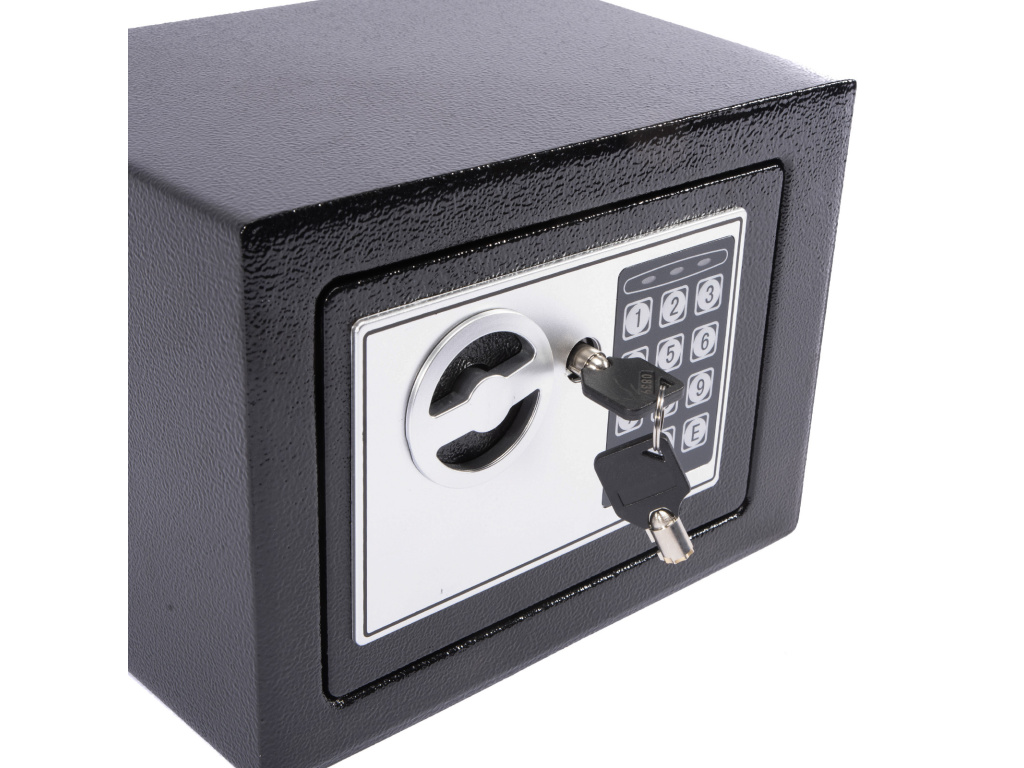 Digitální trezor je ideální a bezpečné úložiště pro cennosti či peníze. Dá se využít i v menších provozovnách, firmách a také jako hotelový trezor. Součástí balení jsou bezpečností klíče k nouzovému otevření a kotevní šrouby s hmoždinkami pro ukotvení do podlahy nebo ke zdi.