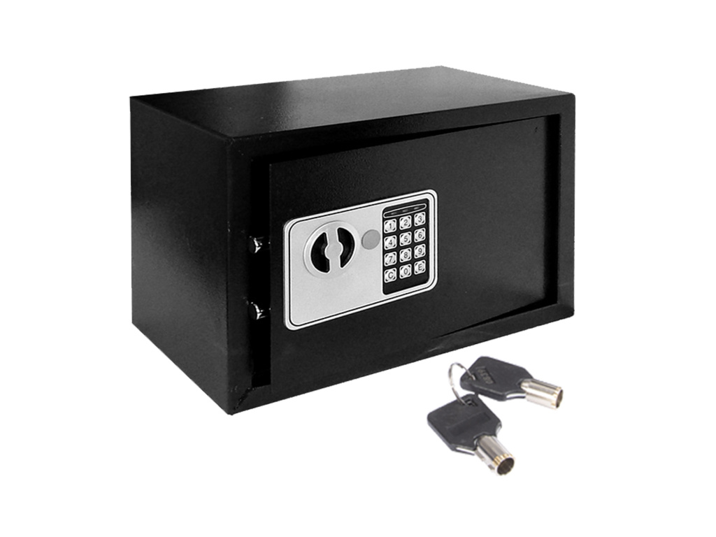 igitální trezor je ideální a bezpečné úložiště pro cennosti či peníze. Dá se využít i v menších provozovnách, firmách a také jako hotelový trezor. Součástí balení jsou bezpečností klíče k nouzovému otevření a kotevní šrouby s hmoždinkami pro ukotvení do podlahy nebo ke zdi.