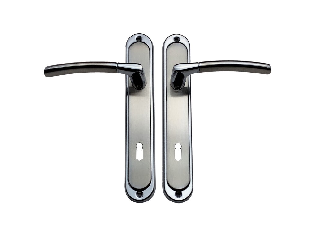 Kompletní kování na jedny dveře včetně spojovacího materiálu.