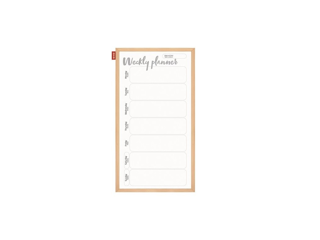Emailová magnetická tabule popisovatelná a stíratelná za sucha Přehledný týdenní plánovací rozvrh Funkční a dekorativní nástroj pro organizaci času Ideální pro domácnosti, kanceláře, restaurace, hotely a mnoho dalších Otěru odolný potisk v černé barvě 7 řádků pro rozpis na každý den v týdnu (každý řádek jeden den) Lakovaný kovový povrch Lehký, estetický rám z masivního borovicového dřeva Horizontální nebo vertikální uchycení tabule Včetně montážní sady na stěnu Součastí balení je stírací houba, popisovač a 3 magnetyTloušťka rámu (podle rozměru tabule): 16-25 mm, tloušťka tabule: 12-40 mm Zadní strana dřevovláknitá deska Rozměr: 30 x 60 cm