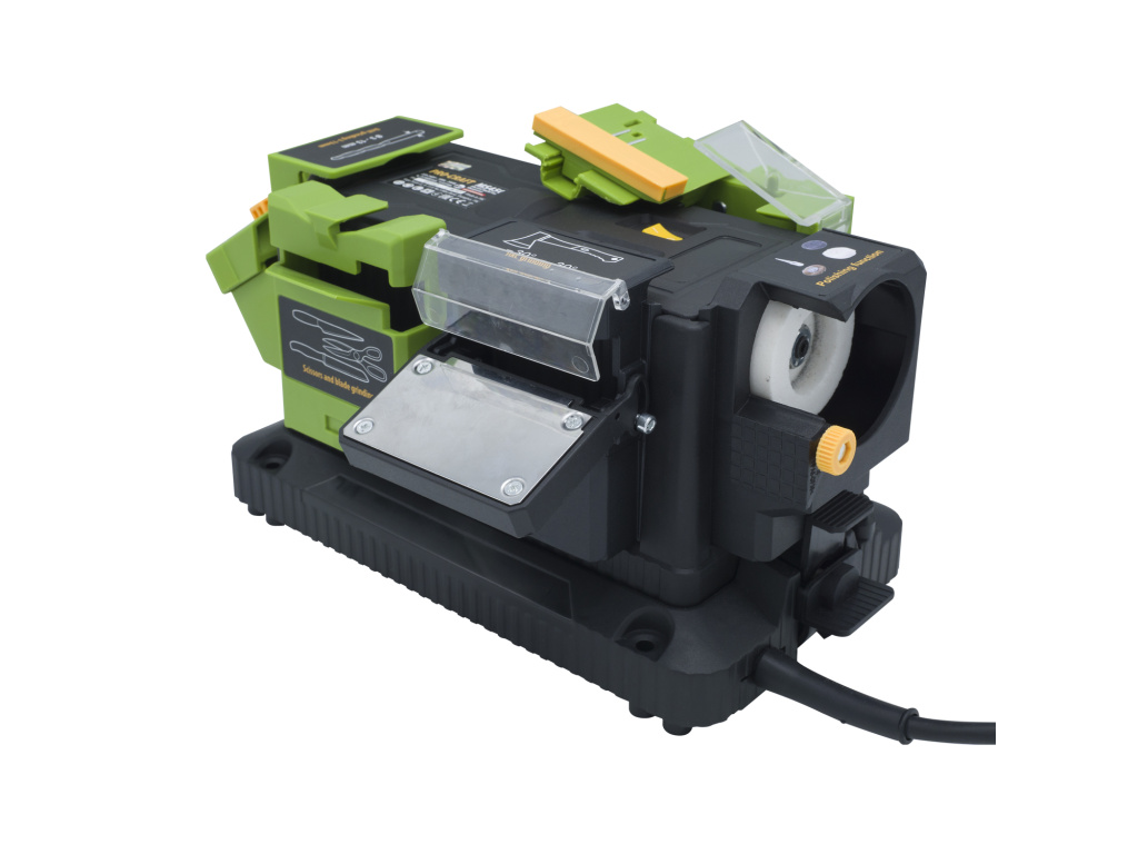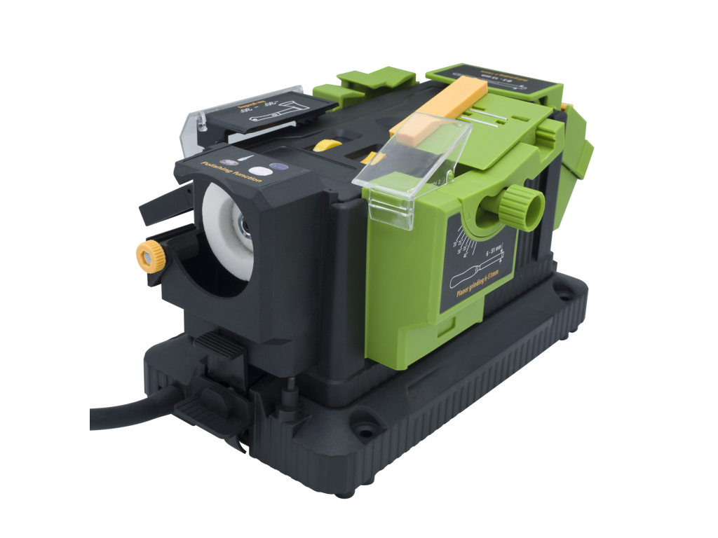 Víceúčelová ostřička Součástí balení: blok pro ostření sekáčů, dlát a čepelí, blok pro ostření vrtáků, blok pro ostření nožů a nůžek, maticový a šestihranný klič. Příkon: 200 W Otáčky: 0-5600/min-1 Průměr brusného kotouče: 53 mm Hmotnost, 2,4 kg