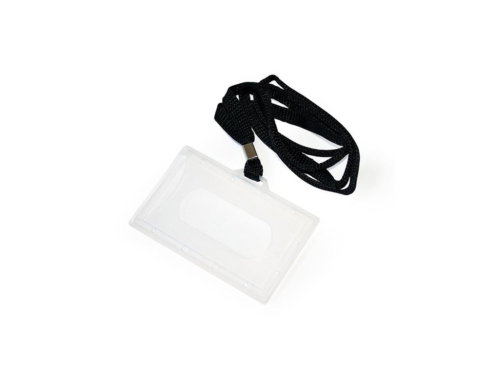 průhledný pevný plastový identifikátor s matnou úpravou vybaven textilním páskem chrání kartu proti poškrábání a jinému mechanickému poškození barva pásku: černá (šířka 8 mm) vnější rozměry: 59x92 mm vnitřní rozměry: 55x90 mm balení 50 ks