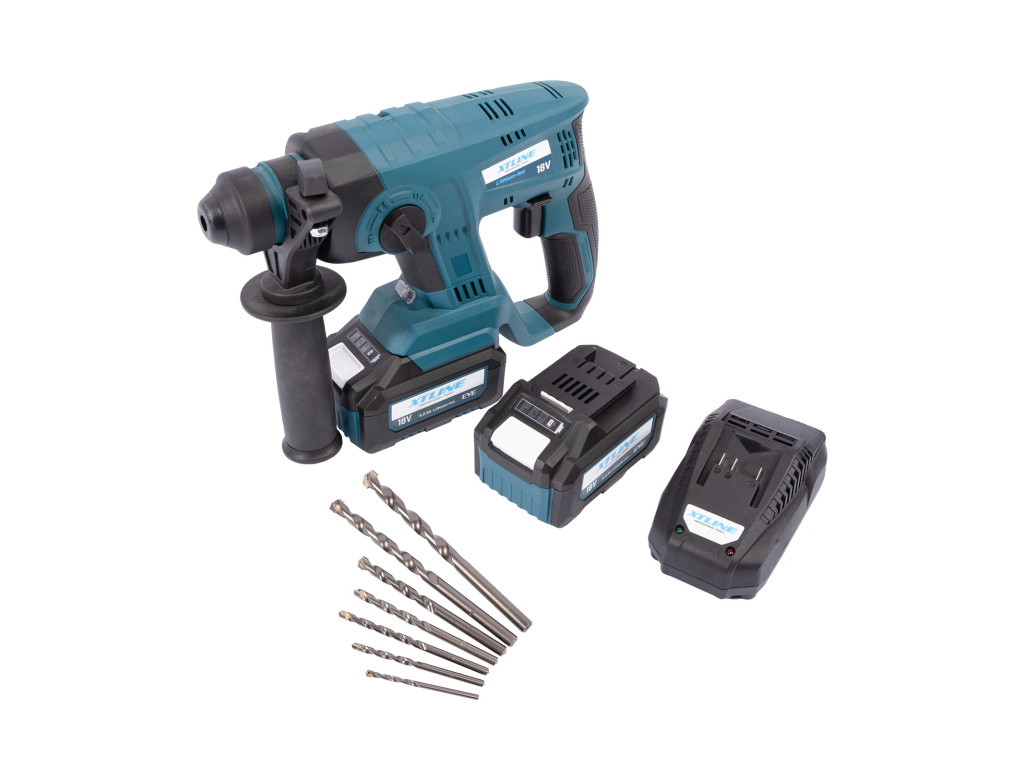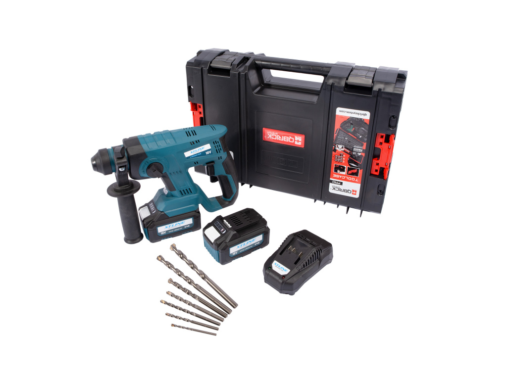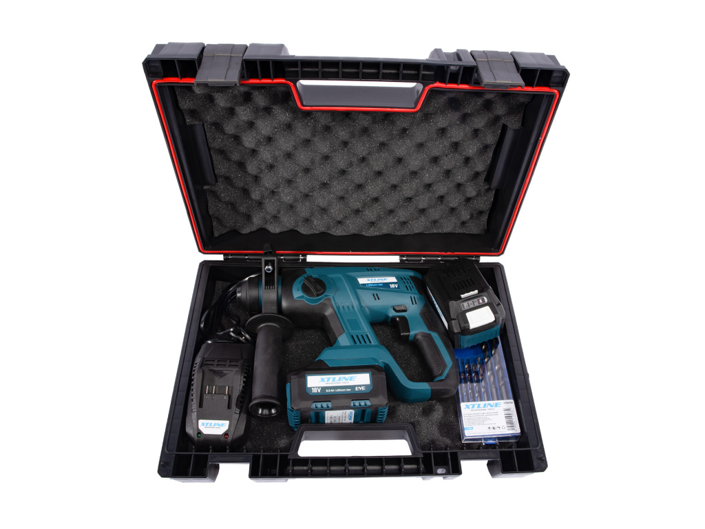 XTLINE Aku kladivo SDS PLUS + 2 baterie 5.0 Ah + sada vrtáků + nabíječka 3.5 A + box