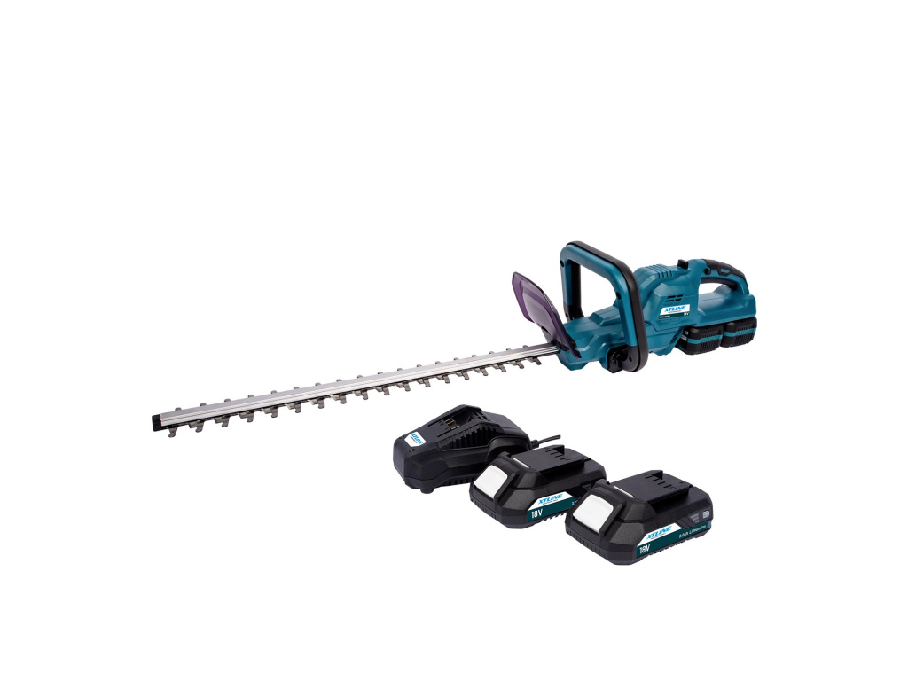 Aku nůžky jsou poháněny dvěma aku bateriemi Li-ion 18 V o celkovém napětí 36 V. Jsou určeny pro stříhání živých plotů, keřů, tújí. Výhodou je obouruční spínač, který zabraňuje náhodnému spuštění nůžek. Součást balení je 2x baterie 2.0 Ah a nabíječka 3.5 A.