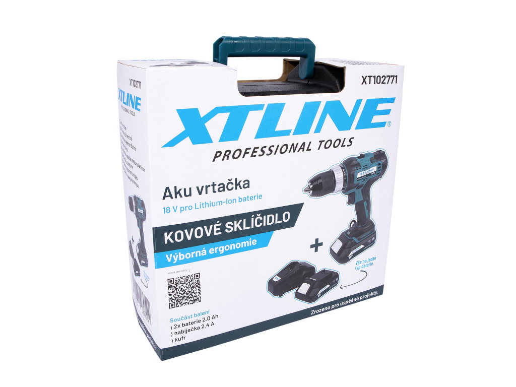 XTLINE Aku vrtačka 18 V, 40 Nm + 2 baterie 2.0 Ah + nabíječka 2.4 A