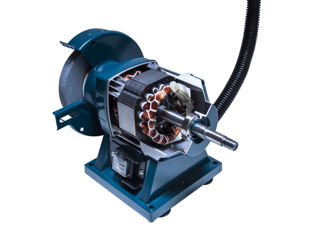 Výkonná stolní bruska je určena pro broušení a ostření. Silný motor poskytuje plynulé broušení a vysoké otáčky kotouče. Dva brusné kotouče pro široké použití. Nastavitelné světlo a prachotěsný vypínač. Pryžové podložky tlumí vibrace při práci.