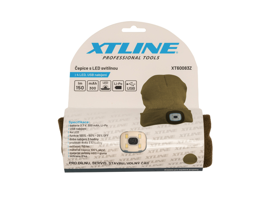 Zimní čepice s LED svítilnou má 3 stupně svítivosti. (100%, 50%, 25%). Je vhodná při práci ve tmě.