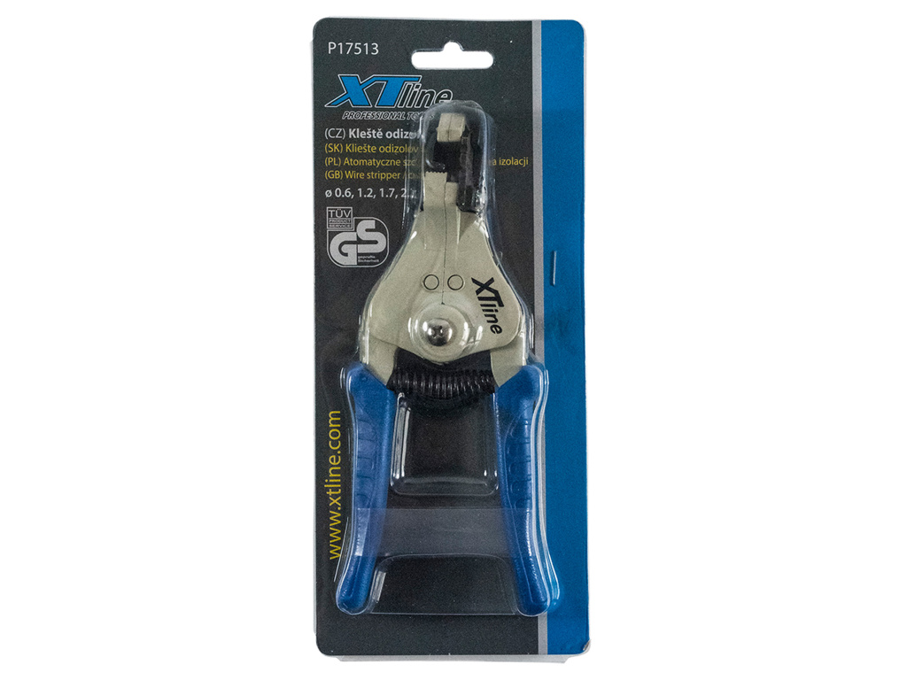 Svěrací čelisti kleští pevně drží drát při odizolování. Při použití kleští nedochází k poškození izolace, licny s jemnými dráty jsou šetrně odizolovány. Kleště s nastavitelným délkovým dorazem pro stále stejné délky odizolování, vybavené tlačnou pružinou.
