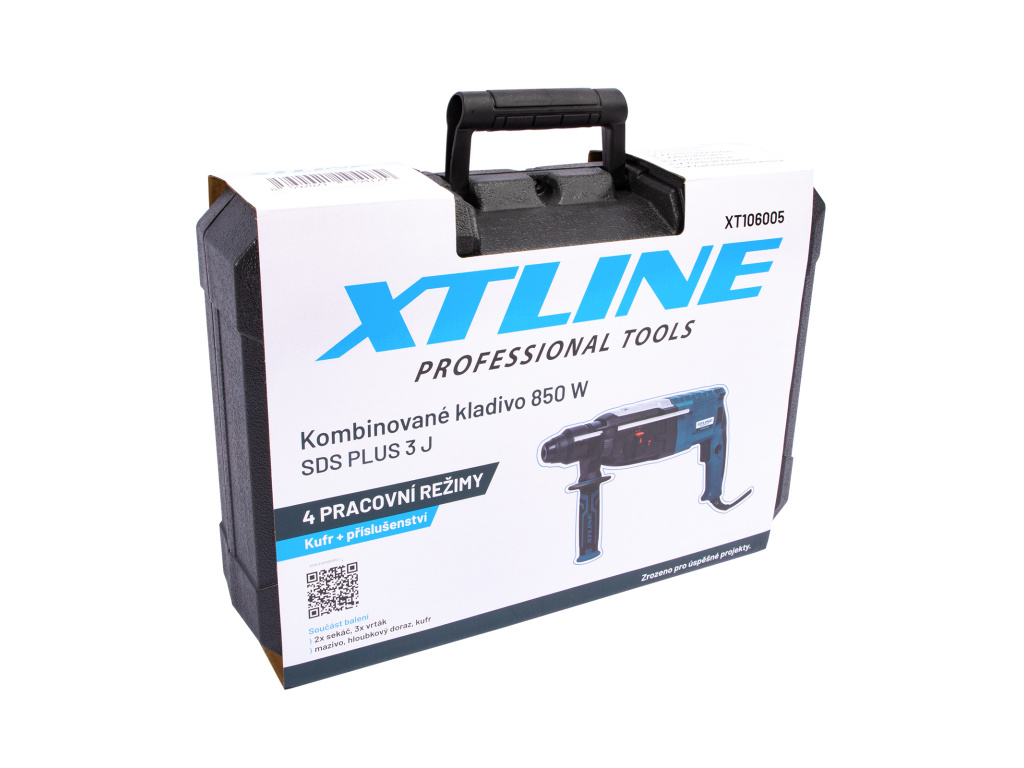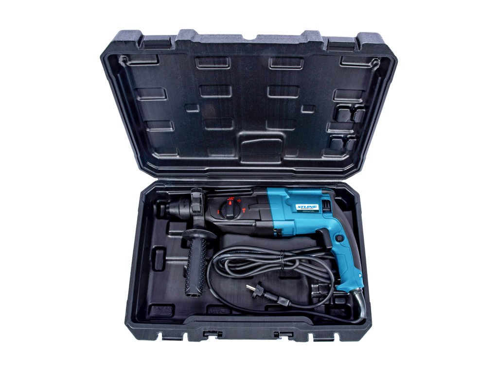 Kombinované kladivo pro upínání vrtáků SDS PLUS. Je určeno pro stavební materiály jako je beton, kámen, cihly atd. Součást balení je SDS PLUS vrták (6,8,10/150mm), sekáč špičatý, plochý SDS PLUS, mazací vazivo a kufr.