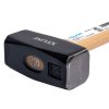 Hlava zajištěna dřevěným a kovovým kolíkem. Ocelovým páskem pod hlavou palice k vyztužení topůrka.