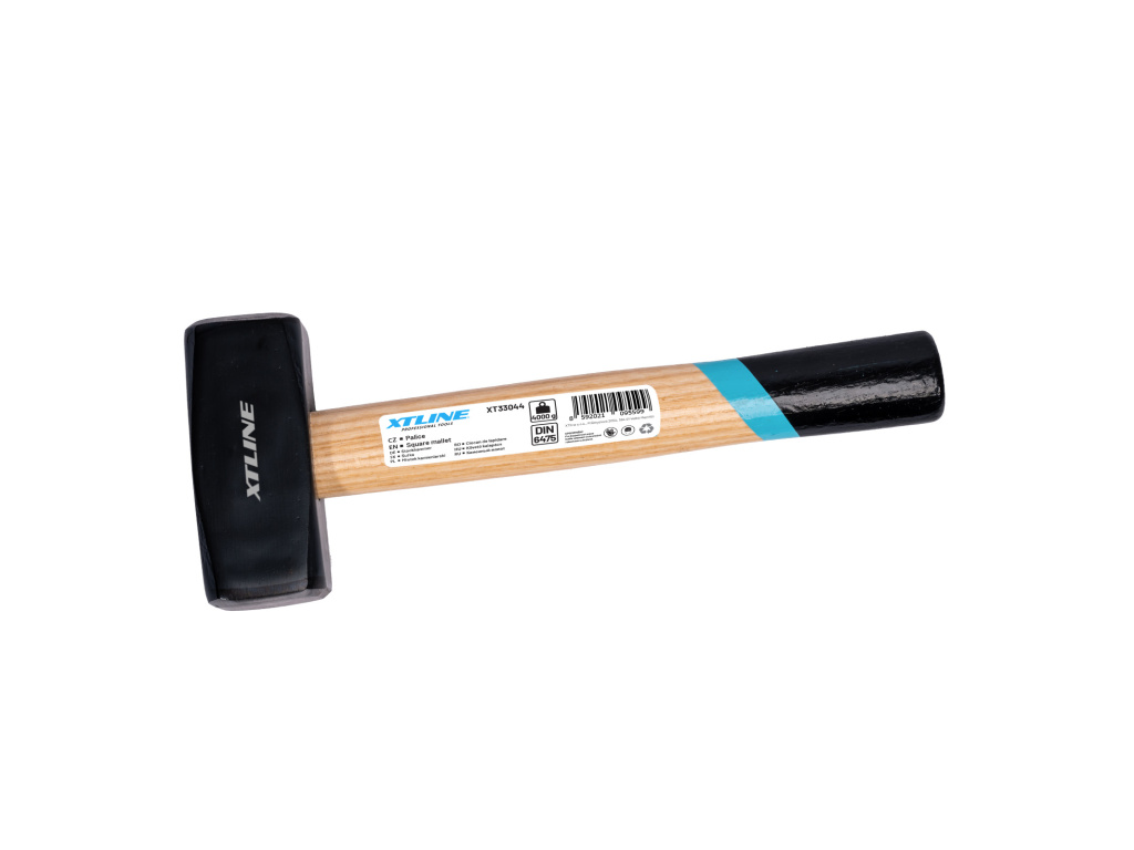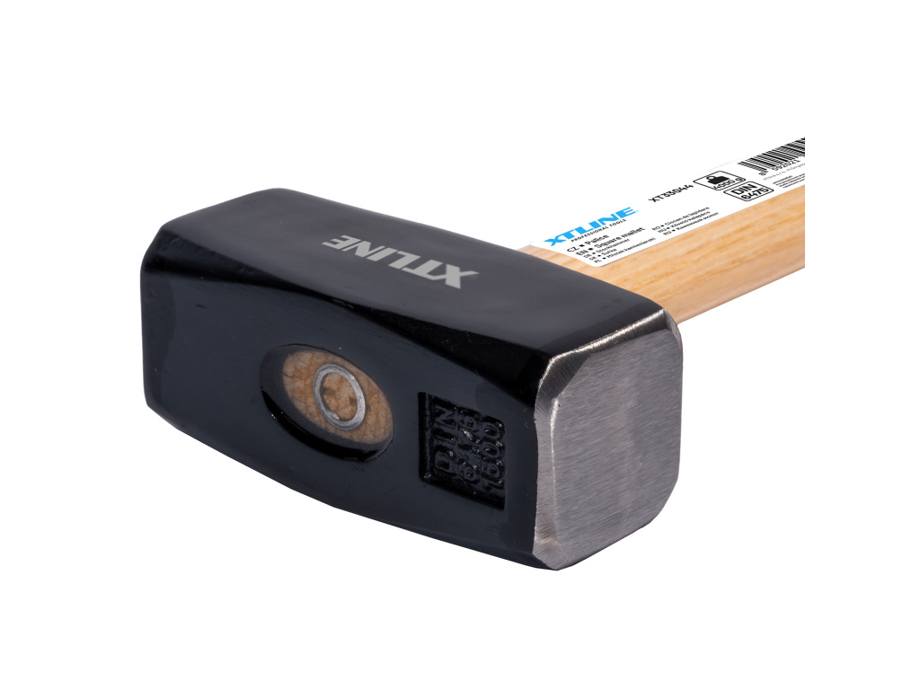 Hlava zajištěna dřevěným a kovovým kolíkem. Ocelovým páskem pod hlavou palice k vyztužení topůrka.