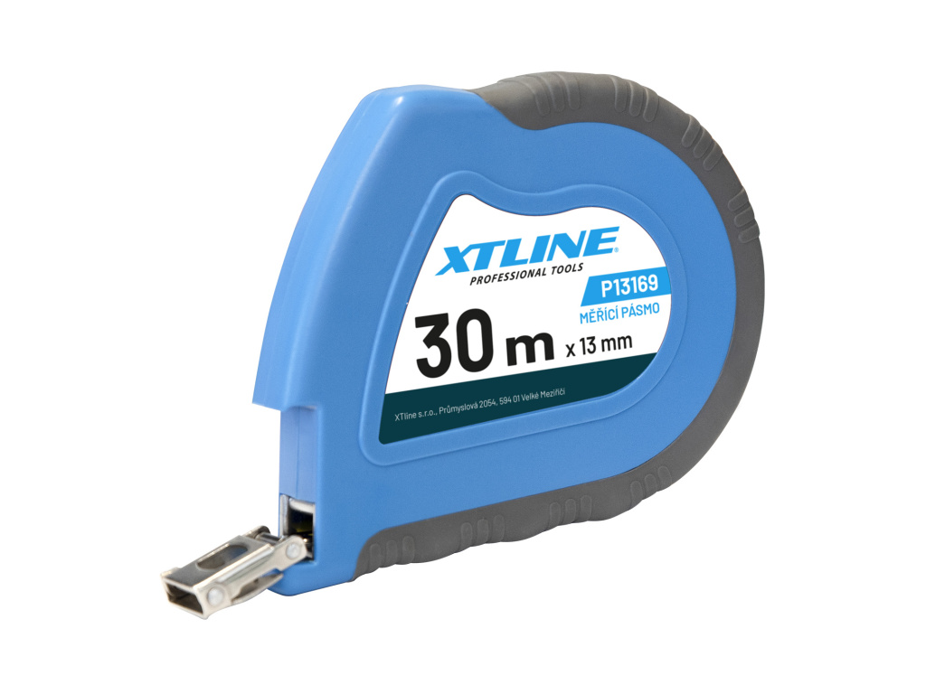 Ocelové pásmo v komfortním plastovém pogumovaném pouzdru. Rychlé navíjení s převodovým poměrem 3:1. Pásmo šíře 13 mm je zakončeno háčkem s plastovým očkem pro snadné uchycení při měření.