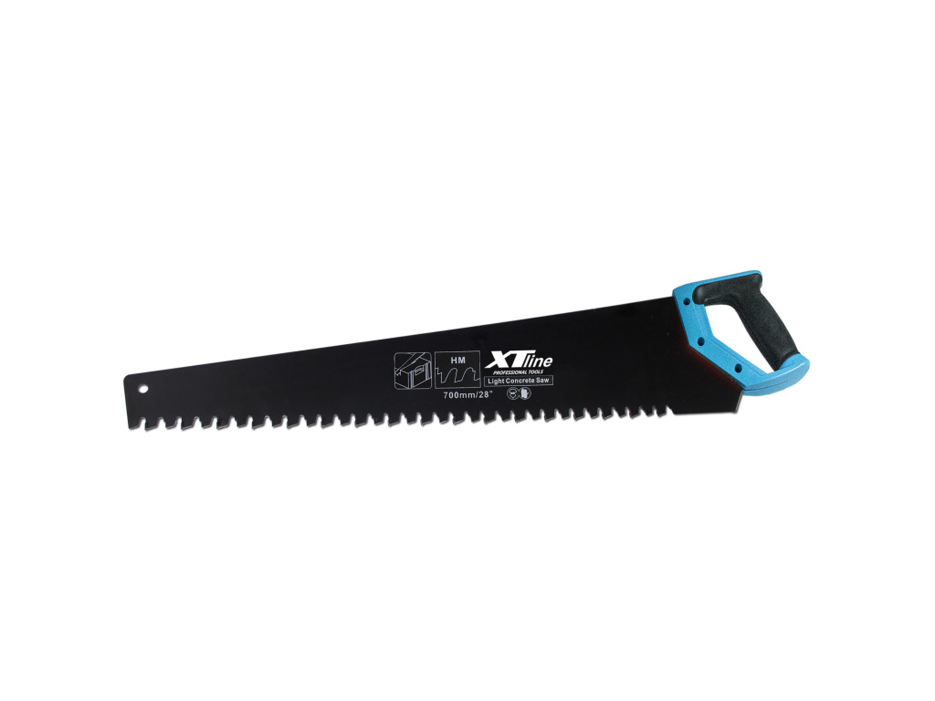 Pila na porobeton 700 mm se 17 karbidovými zuby (celkem 34 zubů). Tenká a přitom pevná pila s teflonovým povrchem pro řezání tvárnic a příčkovek. Kalené zuby zaručující dlouhý řezný výkon. Tloušťka pilového listu je 1,6 mm. Teflonový povrch snižuje tření při řezání. Robustní zuby s SK plátky. Plastové držadlo s pogumováním připevněno třemi šrouby. Pila je vhodná pro řezání porobetonu s nižší hustotou.