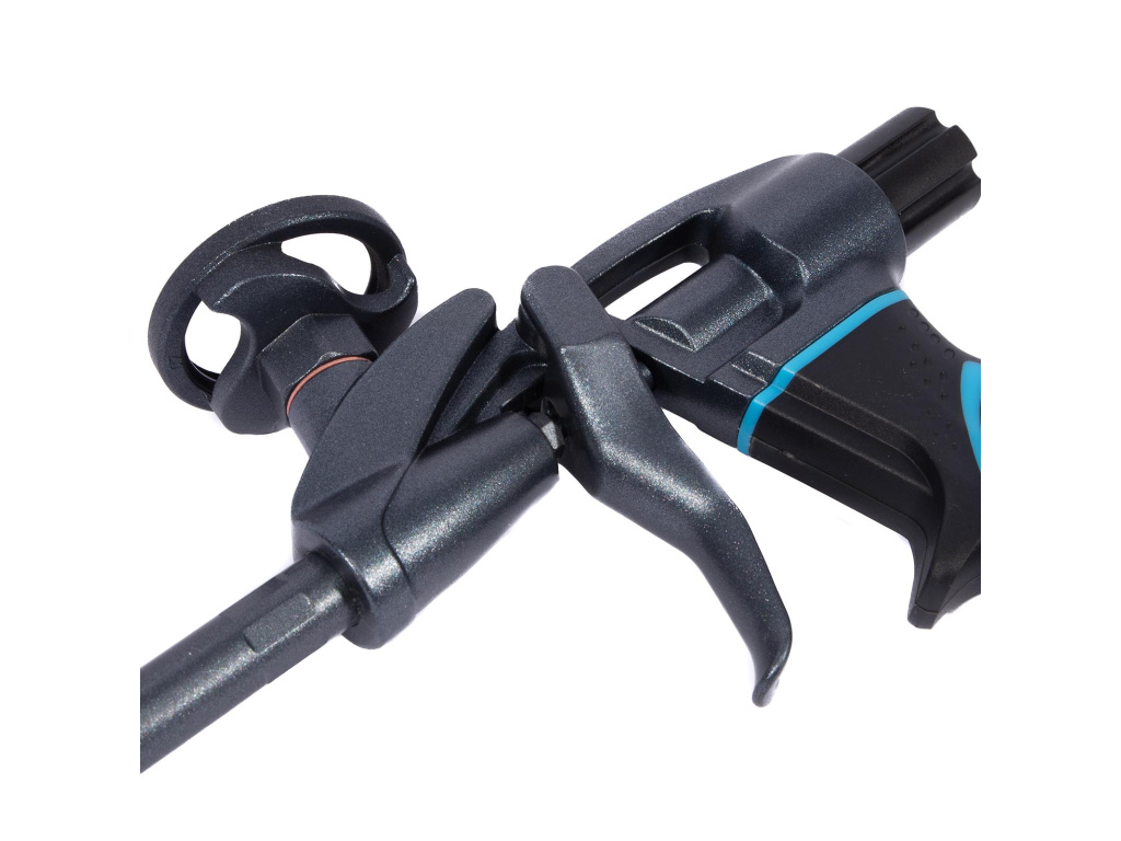 Profesionální pistole na PU pěny s teflonovým povrchem, který značně zjednodušuje čistění. Jemná regulace průtoku pěny pomocí šroubu zaručuje přesné dávkování pěny. Komfortní pogumovaná rukojeť pro pohodlné používání pistole při práci.