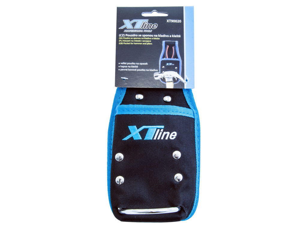 Pouzdro o rozměru 240x90 mm obsahuje velké poutko na opasek, 1x kapsu na kleště a pevné kovové poutko na kladivo.