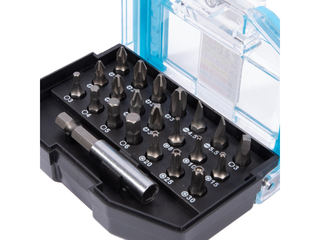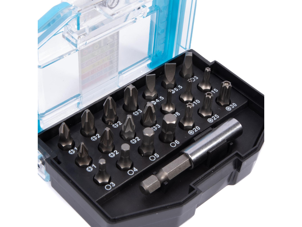 | Bity 1/4": | PL4,5, PL5,5; PH1, PH2, PH2, PH3; PZ1, PZ2, PZ2, PZ3; TRX: T8, T10, T15, T20, T25, T30; IMBUS: 3, 4, 5, 6 mm; Čtyřhran: 3 |