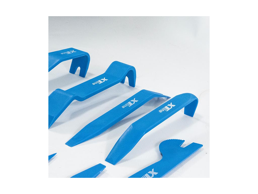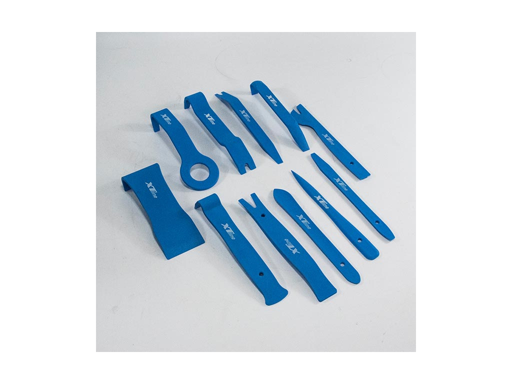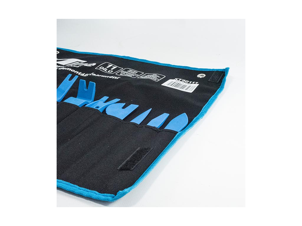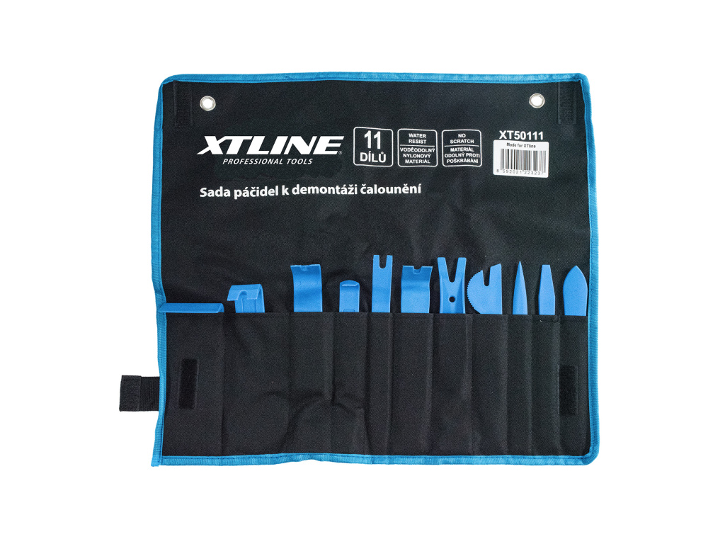 Sada nástrojů pro odstranění čalounění vozidel. Sada obsahuje 11 dílnou sadu nástrojů pro rychlé a precizní odstranění čalounění z jakéhokoli interiéru vozidla. Souprava je vyrobena z tvrzeného nylonu. Jednotlivé nástroje mají speciální profily, které umožňují použití páky při demontáži čalounění, lišt apod.