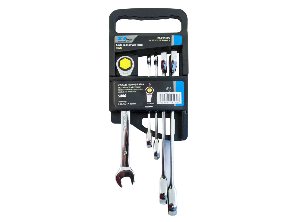 XTLINE Sada očkoplochých ráčnových klíčů 72 zubů, 5 dílů | 8-19 mm, plastový držák